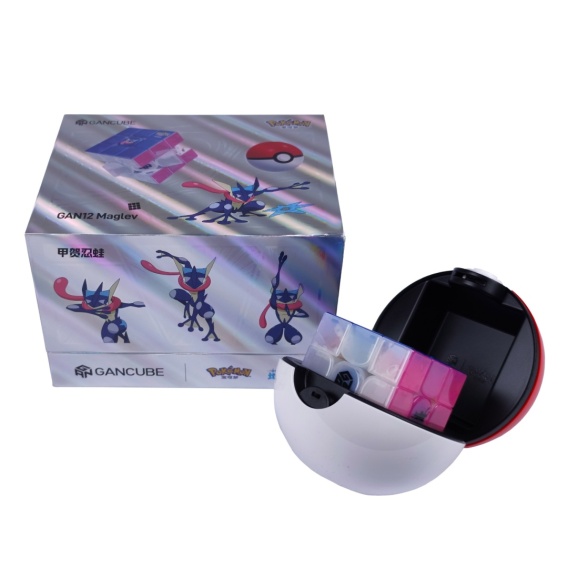 GAN 12 MagLev UV w limitowanym wydaniu Pokemon z końca 2025 roku. Poza typowymi akcesoriami dla tego modelu, kostka posiada etui w kształcie Pokeballa oraz limitowany woreczek Pokemon.