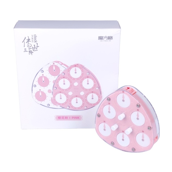 Trójkątny magnetyczny clock od QiYi wydany w 2025 roku. Wersja w kolorystyce Sakura Pink.